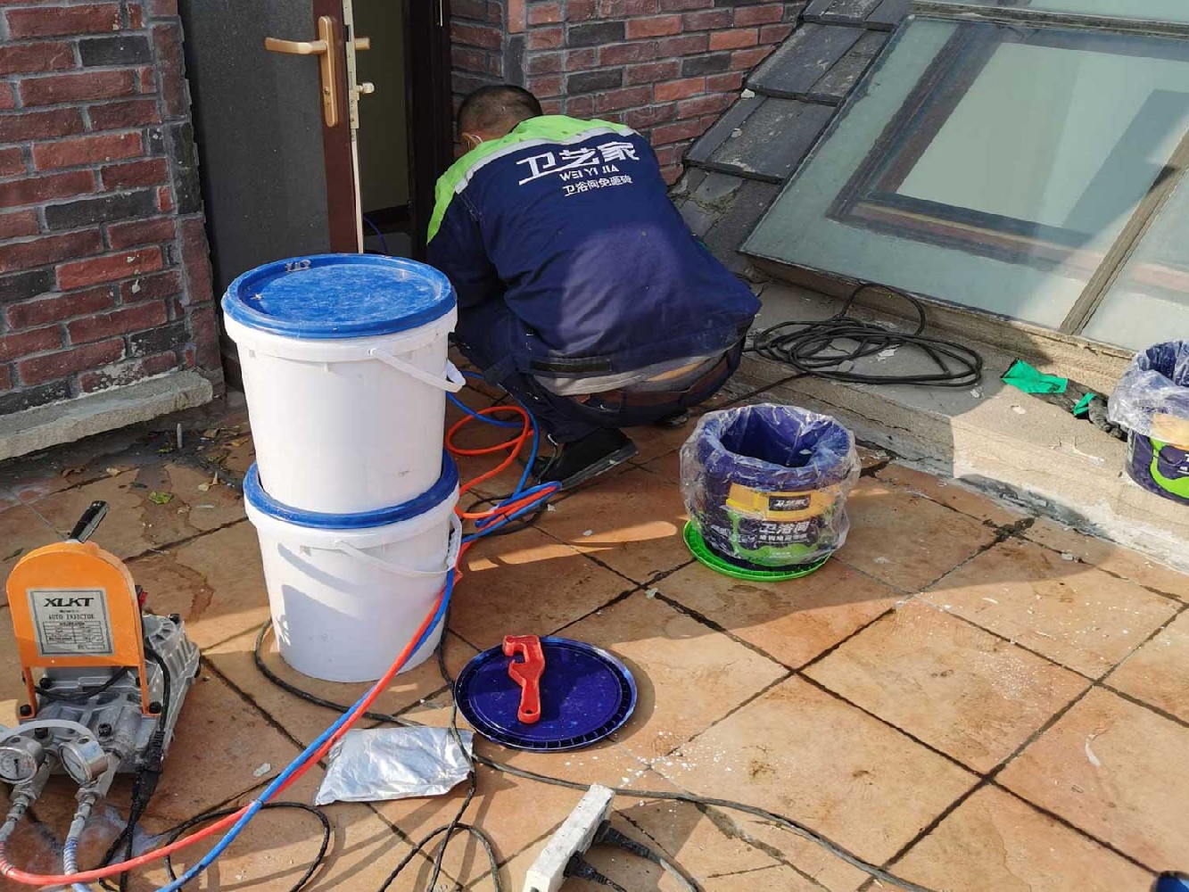 师傅们抵达后,立即对小露台及周边区域进行了细致检查。他们发现,楼顶防水层在长期日晒雨淋下已经老化开裂,雨水正是通过这些缝隙渗入室内。此外,部分排水口被杂物堵塞,导致积水无法顺畅排出,进一步加剧了渗漏情况。